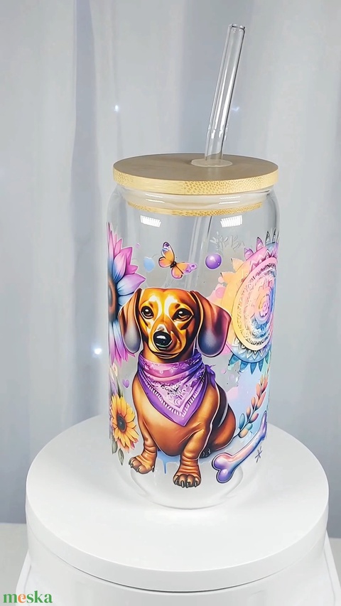 Üveg, szívószálas pohár, bambusztetővel