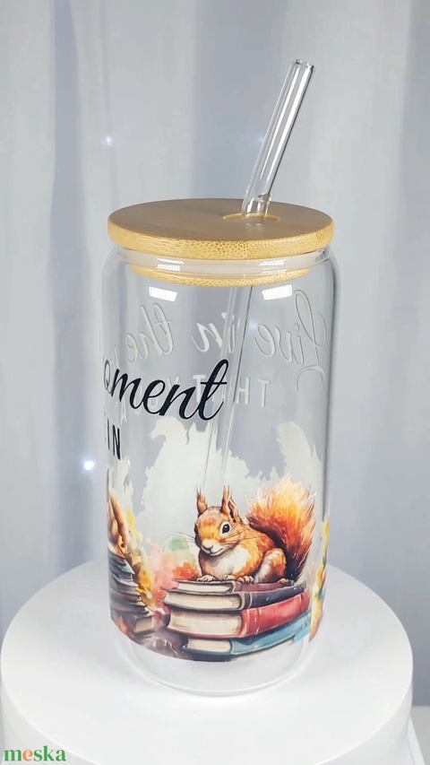 Üveg, szívószálas pohár, bambusztetővel
