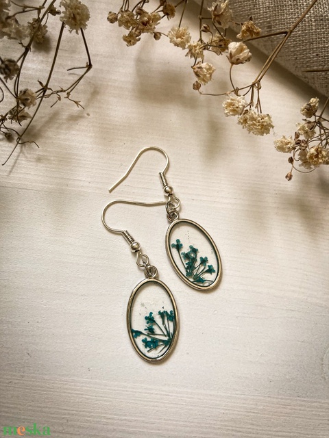 Lógós fülbevaló - Ovális műgyanta fülbevaló kék virágokkal