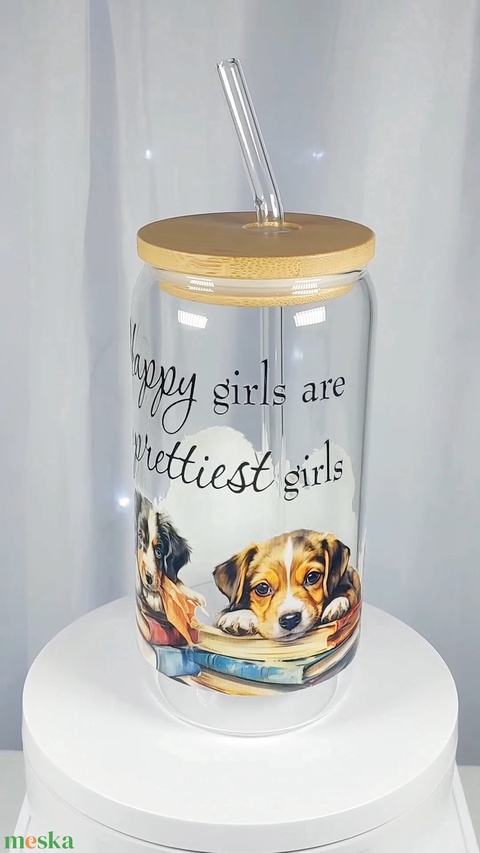 Üveg, szívószálas pohár, bambusztetővel