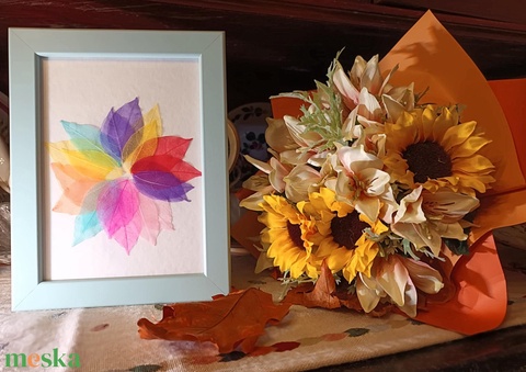 - Anyaga: száritott levelek, akvarell papír, ragasztó, fa