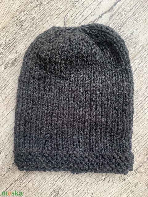 Férfi Sapka, Sötét szürke akryl fonalból készült sapka eladó. 56-60 cm-es fejméretre