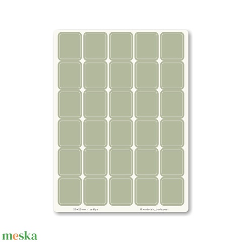 30 db 20x25mm-es téglalap alakú matrica zsálya színben