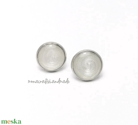 Noémi - gyöngyházfehér fülbevaló acél alappal választható méretben