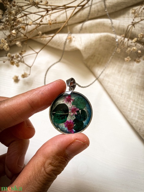 Medálos nyaklánc - Műgyanta medál - Tavirózsák