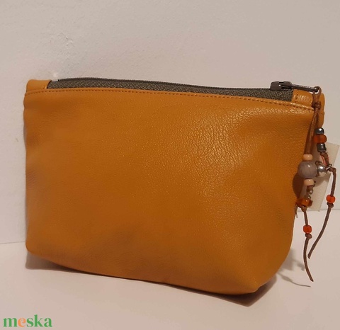 Mustársárga műbőr neszesszer, gyöngydísszel (kicsi)