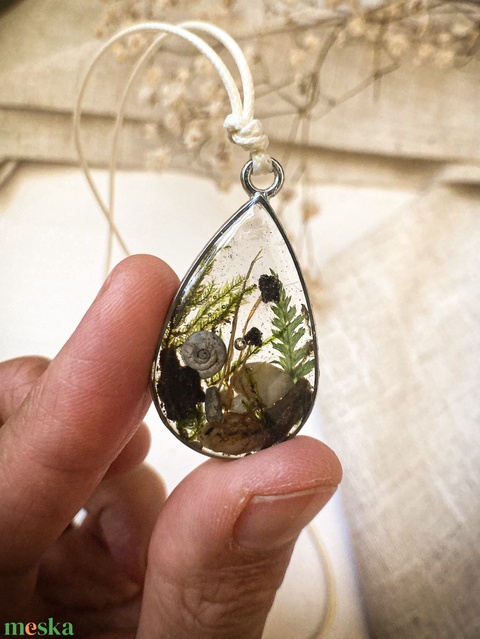 Medálos nyaklánc - Csepp alakú műgyanta medál - Erdei világ