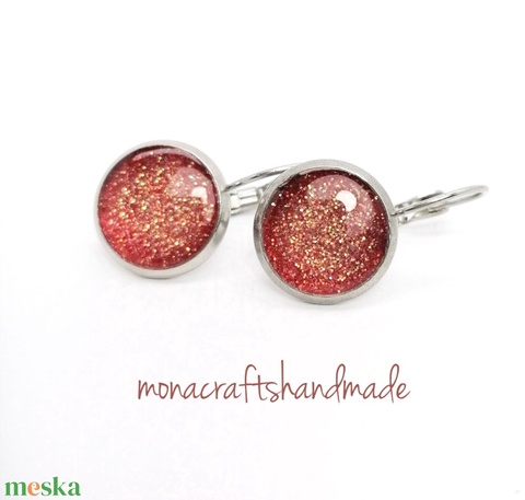 Stella - pirosas színű csillámló franciakapcsos fülbevaló acél alappal
