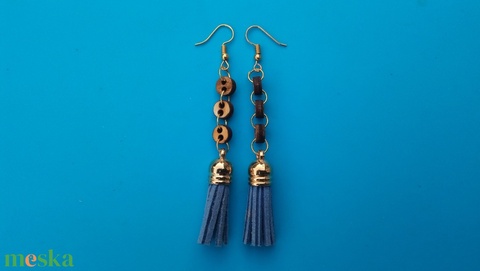Bojtos fülbevaló. (kékmübőr) Láncos.