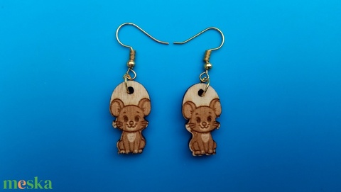 Gravírozott, kivágott egér fülbevaló. Egeres, egérrel készült füldísz.