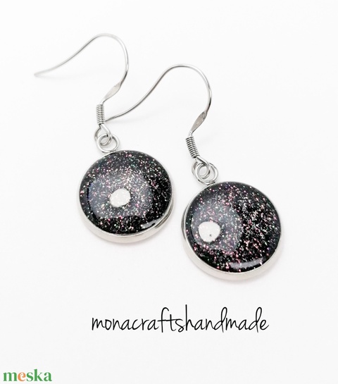 Emese - csillámos fülbevaló acél alappal választható méretben