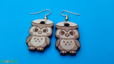 Gravírozott, kivágott bagoly fülbevaló. Baglyos mintás, Bagollyal készült gyerekeknek.