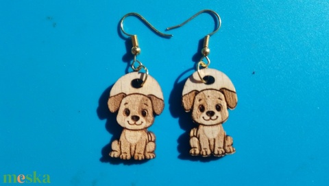 Gravírozott, kivágott kutyusos kutyás fülbevaló. Kutya, kutyus mintával készült füldísz.