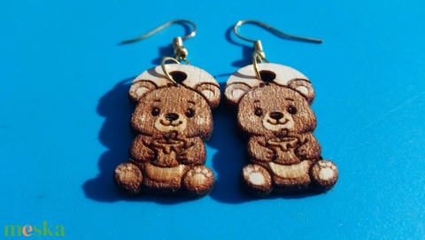 Gravírozott, kivágott macis ( medvés ) fülbevaló. Maci, medve mintával készült füldísz.