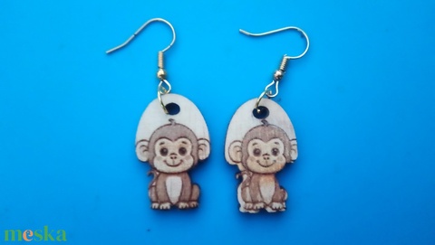 Gravírozott, kivágott majmos fülbevaló. Majom mintás füldísz.