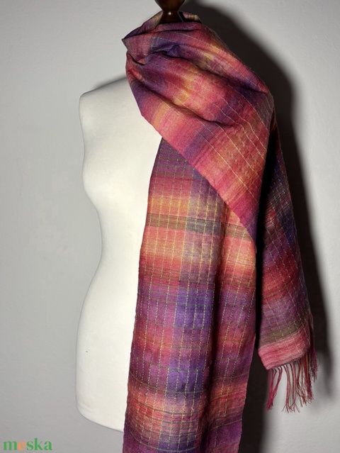 Kézzel szőtt Pink Barack Lila Merinó - Rózsarost - Kasmír Kendő