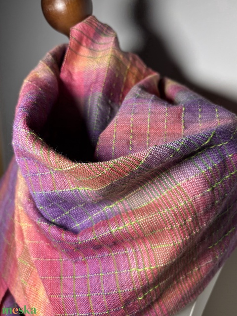 Ez a kézzel szőtt kendő elég hosszú ahhoz, hogy kendőként vagy vállra vetve is viselhesd, elegáns megjelenést kölcsönözve minden öltözéknek. Finoman, kézzel sodrott rojtjai stílusossá és praktikus viseletté teszik – ideális a hűvösebb időjárásban. Akár magadat kényezteted vele, akár egy szerettednek keresel figyelmes ajándékot, ez a színes kendő biztosan lenyűgözi majd.