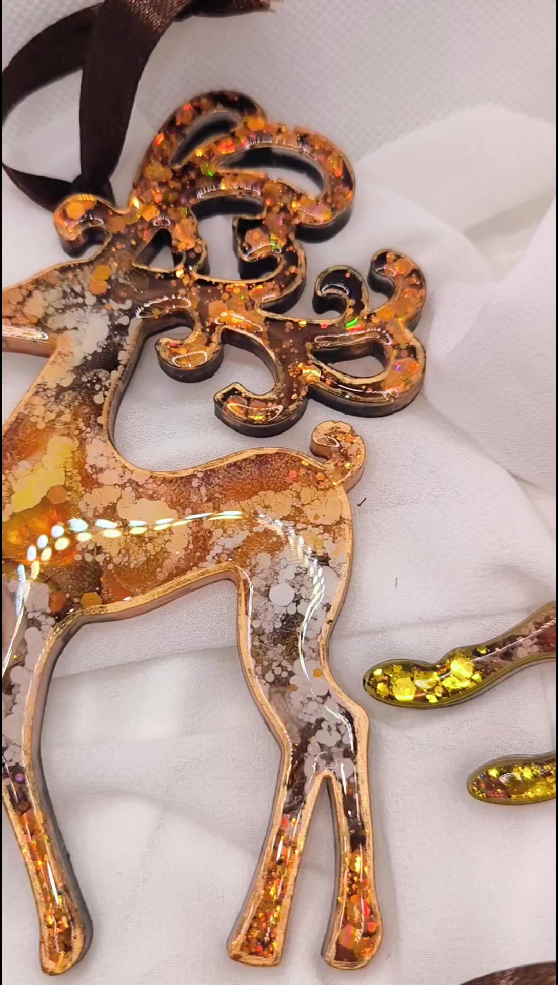 - Anyaga: epoxi gyanta, organza szalag