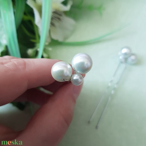 Fehér gyöngyös menyasszonyi hajtű, drótos hajdísz