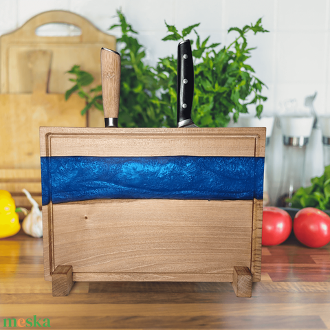 3 az 1-ben prémium vágódeszka, késtartó és tálaló egyben kék