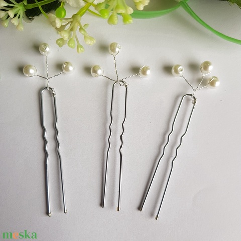 Fehér gyöngyös menyasszonyi hajtű, drótos hajdísz