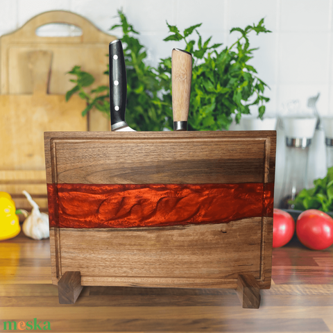 3 az 1-ben prémium vágódeszka, késtartó és tálaló egyben piros