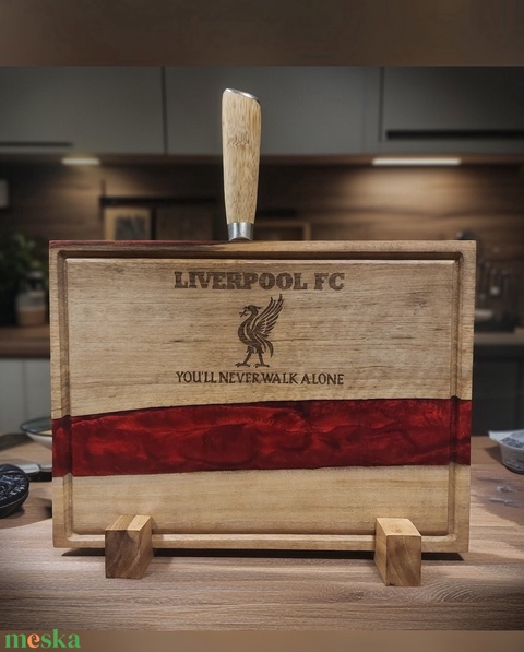 3 az 1-ben prémium vágódeszka, késtartó és tálaló egyben LIVERPOOL piros