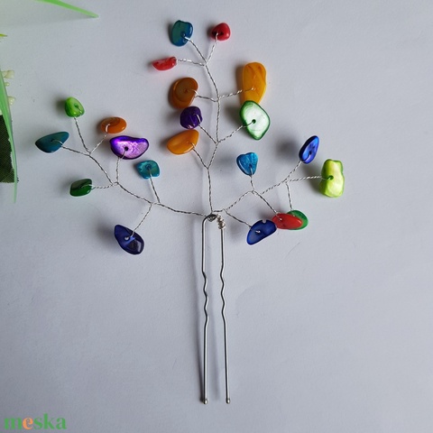 Színes lapos gyöngyös menyasszonyi hajtű, drótos hajdísz