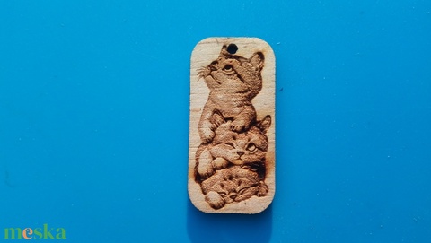 Macskák egymáson. Gravírozott cicás kulcstartó.