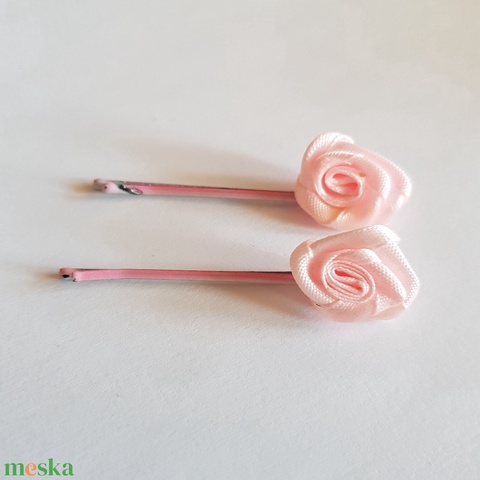Rózsaszín szatén rózsás hullámcsat, hajtű, hajdísz