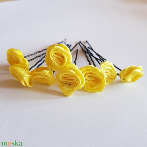 Citromsárga színű szatén rózsás hajtű, hajdísz