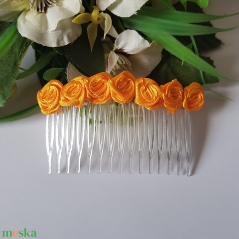 Narancssárga színű szatén rózsás hajfésű, hajdísz