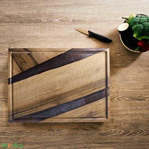 - Anyaga: diófa, élelmiszerbiztos epoxy gyanta, fa