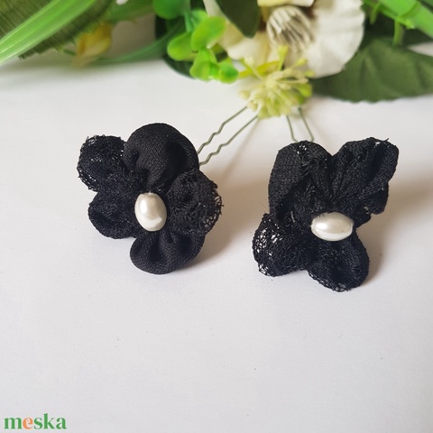 Gyöngyös, fekete csipke virágos hajtű, hajdísz
