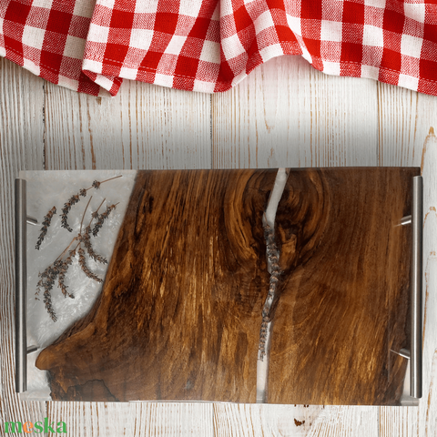 - Anyaga: diófa, élelmiszerbiztos epoxy gyanta, fa