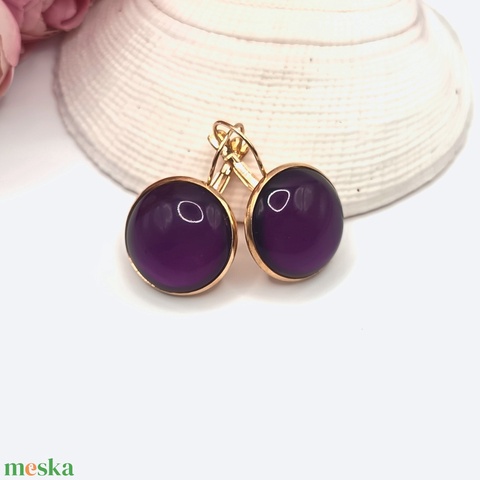 Arany franciakapcsos fülbevaló – padlizsánlila üveg lencsével