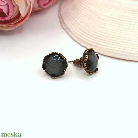 Antik bronz bedugós fülbevaló – füstös szürke lencsével