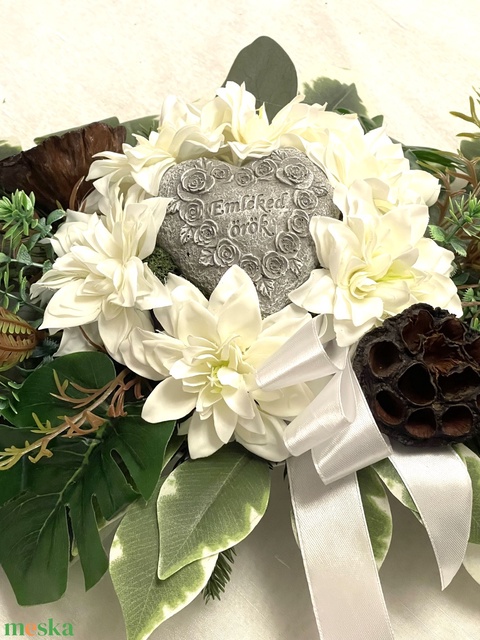 - Anyaga: műanyagalj, betonszív, selyemvirág, termés, szalag, műzöld