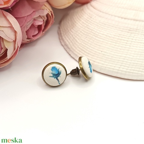 Antik bronz bedugós fülbevaló – kék rózsa mintás textillel