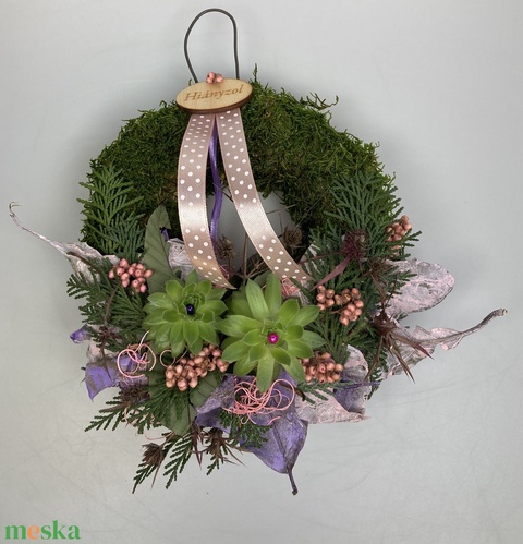 - Anyaga: kellékek, termés, szárazvirág, mohakoszorú