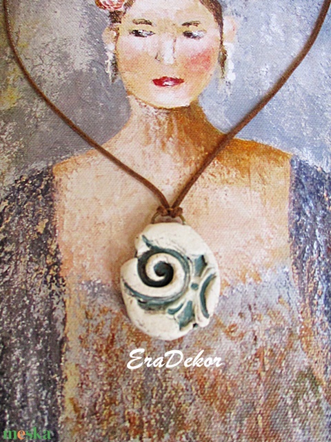 - Anyaga: vízbázisú akrilfestékek, vízbázisú lakk, , zsinór, bőr, gyöngy, kerámia, boho, rusztikus