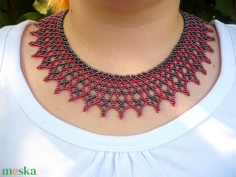 Zsűrizett! Hematit fekete-bordó szívecskés gyöngynyaklánc, gyöngy nyaklánc, gyöngygallér, gyöngy ékszer