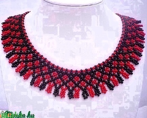Fekete-piros tradícionális népi gyöngygallér, gyöngynyaklánc, tászli, gyöngyékszer