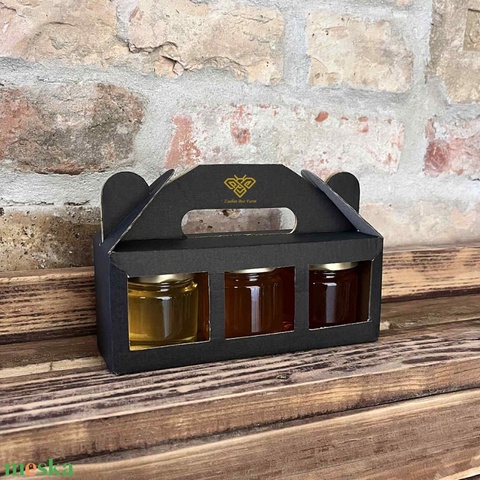 Mézválogatás díszdobozban – 3×150 g (Akác, Selyemfű, Vadvirág) + ajándék virágmag