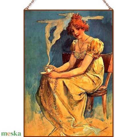 Alphonse Mucha - Woman with coffee cup üvegkép