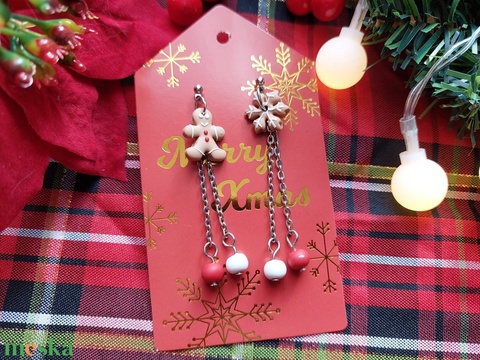 Karácsonyi mintás gyurma medálos fülbevaló mézeskalács mintával