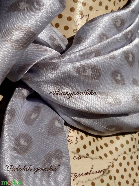 "Babakék szívecskés" hernyóselyem kendő - Aranypántlika
