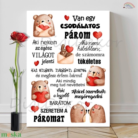 Van egy csodálatos párom. Falikép pároknak, macis rajzokkal.