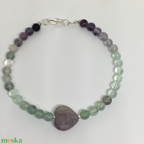 4mm-es golyó fluorit és 10mm-es szív fluorit szemből főzött karkötő.