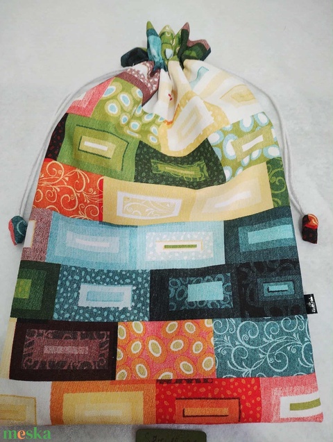 Kenyeres zsák PUL béléssel, színes téglalapok kavalkádja